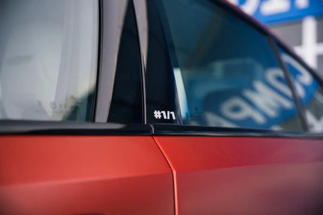 这台车是宝马在美国交付的第一辆G90 M5,只此一辆,但它也并非是普通意义上的商品,因为它将通过拍卖的形式决定谁才是车主,而所有的收益都将用于公益事业。第一眼大家也看出来了,这车最大的亮点就是外观采用了个性化定制的磨砂橙金属漆面,这也是唯一一辆采用这个配色的G90 M5。和车漆相呼应的还有前20寸、后21寸的双色952M型轮毂,B柱位置还能看到专属的#1/1标识。